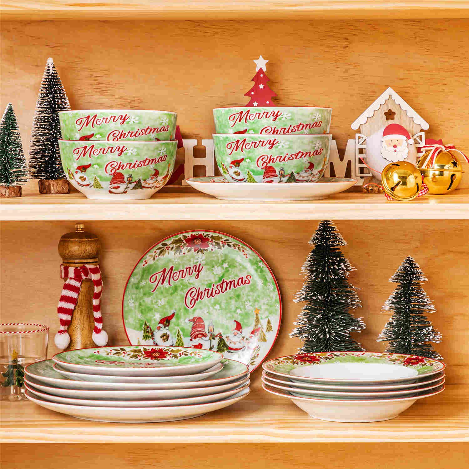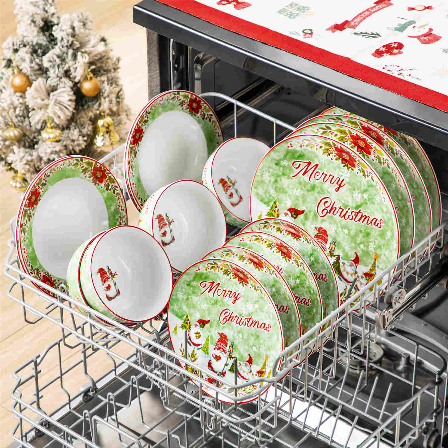Home Porcelain Mldyrzyh Xmas Gnome 16 Piece Dinnerware Set