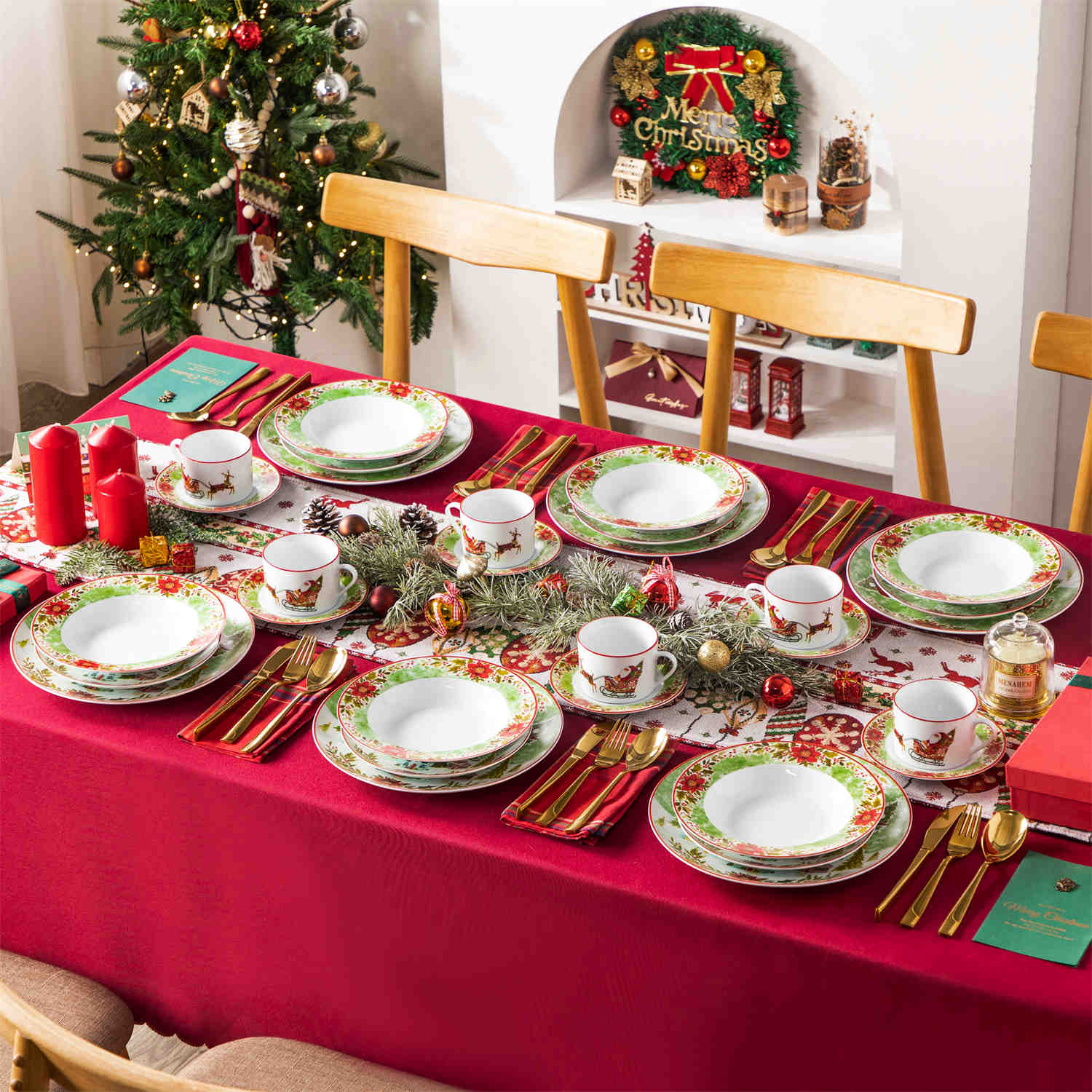 Home Porcelain Mldyrzyh Xmas Reindeer Sleigh 30 Piece Dinnerware Set